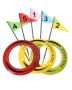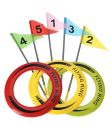 Extiende las banderas por el jardín o el parque y "da en el clavo" con el anillo volador.